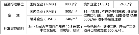 标准展位8800元/9平方,空地展位8100元/9m2(已含2人会务费);
